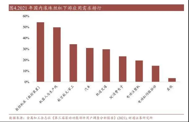 在下游應(yīng)用場景中,目前國內(nèi)數(shù)控機(jī)床、機(jī)器人與生產(chǎn)線以及航空航天與軍工為滾珠絲杠最主要應(yīng)用去向。隨著全球智能化產(chǎn)業(yè)鏈的不斷擴(kuò)張和自動化在各領(lǐng)域的不斷深入,人型機(jī)器人、高檔數(shù)控機(jī)床、電動機(jī)械等下游領(lǐng)域有望不斷為包括滾珠絲杠在內(nèi)的滾動功能部件提供市場增量,從而擴(kuò)大滾動功能部件的總市場空間。